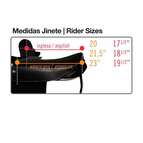 *21.5" (55 cm.) Americana // 18.5" (47 cm.) Inglesa....amazonas que midan de 1.65 a 1.75 metros.