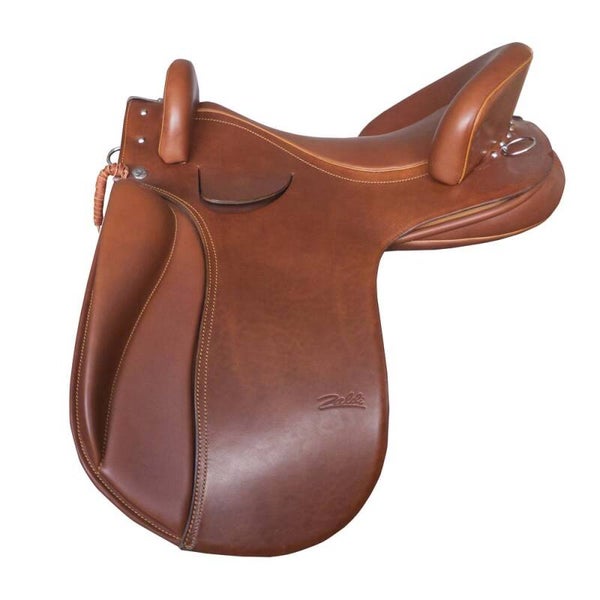Nuevo diseño de la silla española tradicional con rodilleras exteriores de doma clásica.