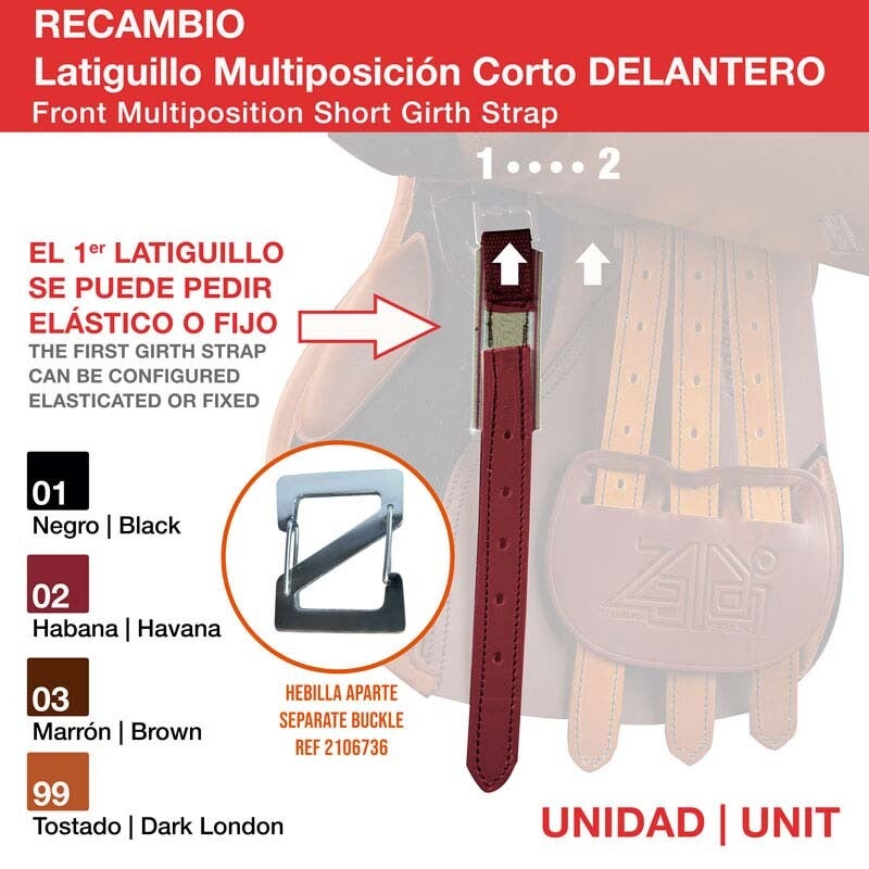 Se vende por unidades individuales para adelante; atrás las sillas de salto o uso general llevan 3 latiguillos cortos de serie.