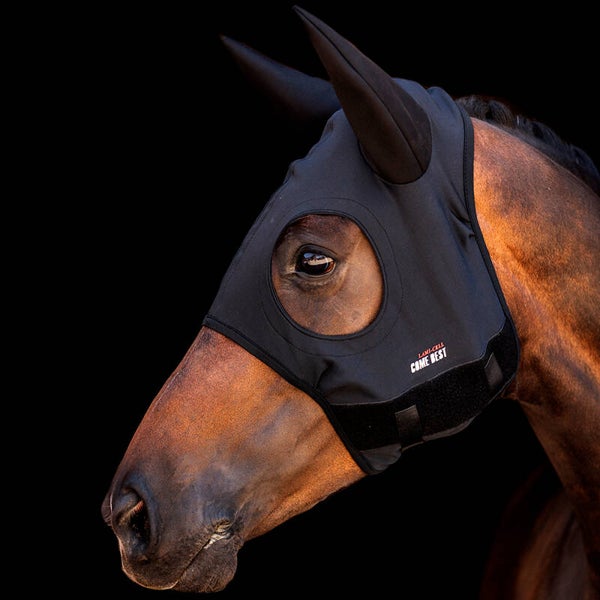 • Uso versátil: Puede emplearse en el establo, en el paddock o incluso durante el transporte. La máscara es tan cómoda y efectiva que puede utilizarse las 24 horas del día si es necesario.