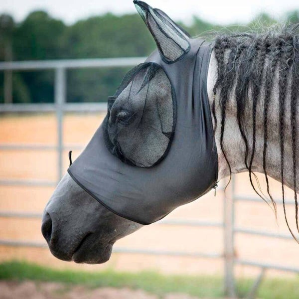 Suave mosquero de lycra elástica, con malla negra en orejeras y ojos para mayor ventilación y protección.