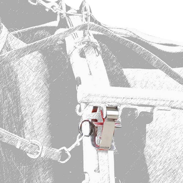 Seguro enganche tipo mosquetón utilizado para el carruaje, que proporciona un rápido y fácil enganche y desenganche.