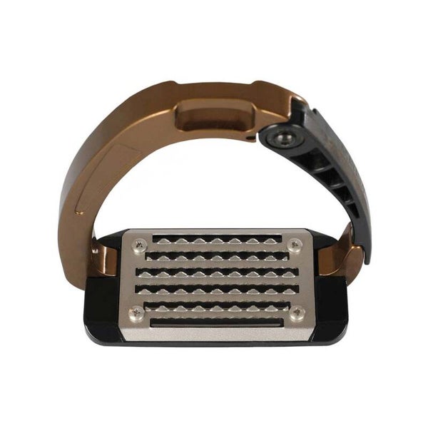 El taco del estribo también está hecho de poliamida y la banda de rodadura es de acero inoxidable.