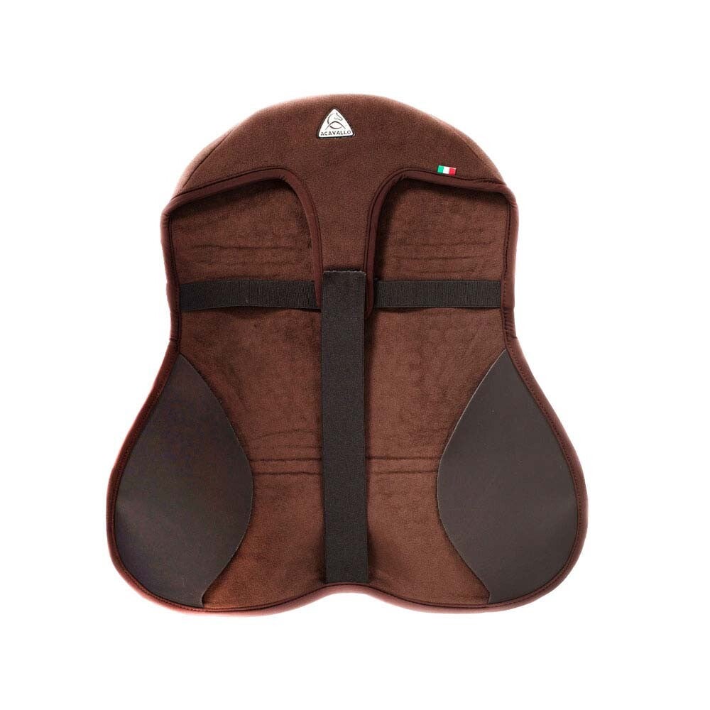 El gel de Acavallo proporciona una capa de material antideslizante y transpirable en estos asientos soportando el peso del tronco del jinete, evitando movimientos innecesarios y mejorando su equilibrio en la silla montar.