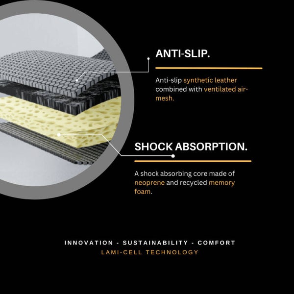 Utilizamos nuestra tecnología EnviroGreen adaptando muchas características ecológicas, como el cuero sintético PU antideslizante y la espuma viscoelástica reciclada, que añade confort y absorción de impactos tanto para el caballo como para el jinete. El forro de malla de aire proporciona transpirabilidad, mientras que el panel elástico en la cruz garantiza el alivio de presión en las zonas sensibles. El salvacruces ALL-IN-1 de Lami-Cell es la combinación perfecta de innovación, sostenibilidad y confort.