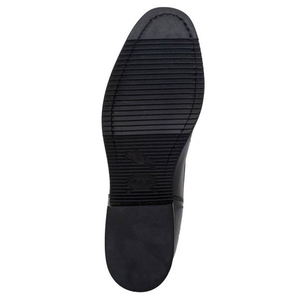 * La suela de cuero y goma Vibram presenta un perfil técnico para un agarre seguro en el estribo.